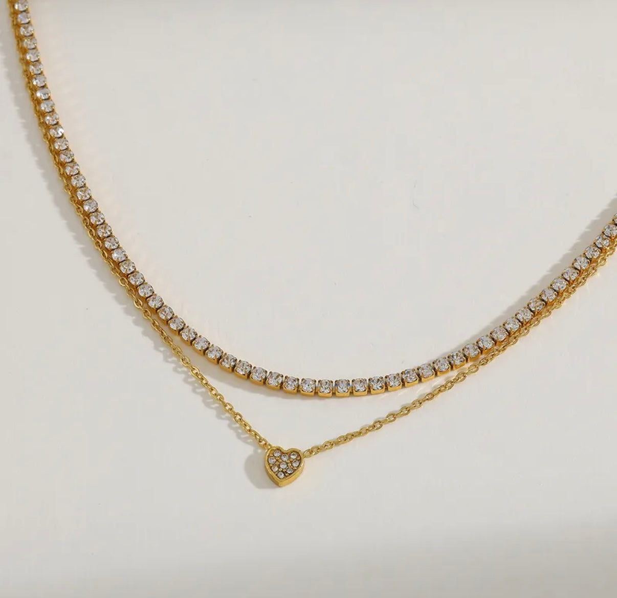 Introducing our 18k gold plated heart double necklace! Made with tarnish-free stainless steel, this necklace is not only stylish but also durable. With our money-back guarantee, you can be confident in your purchase. Upgrade your jewelry collection now with this timeless piece.