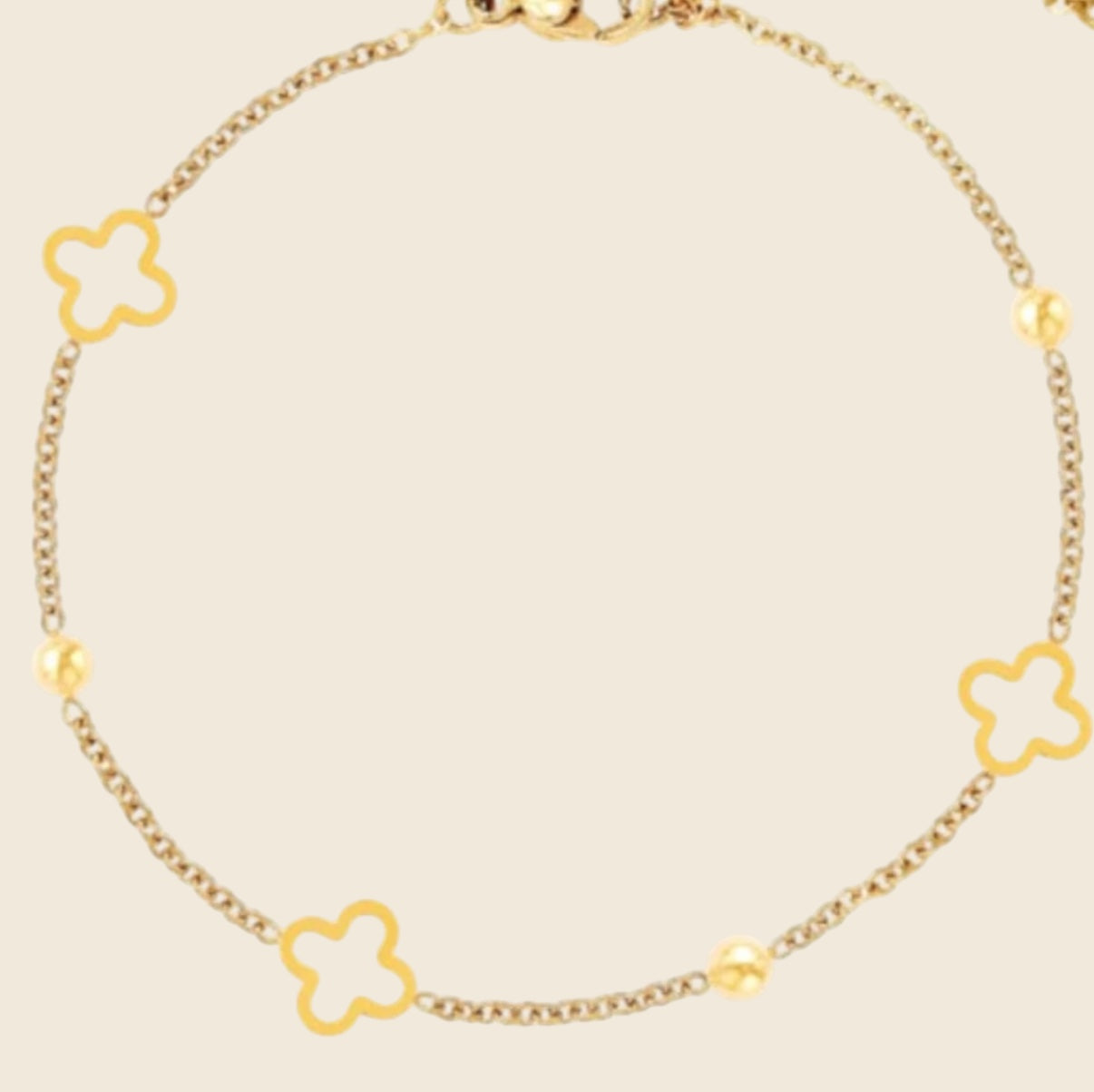 Expertly crafted from gold plated stainless steel, this open clover bracelet adds a touch of elegance to any outfit. The tarnish-free design offers a timeless and sophisticated look.