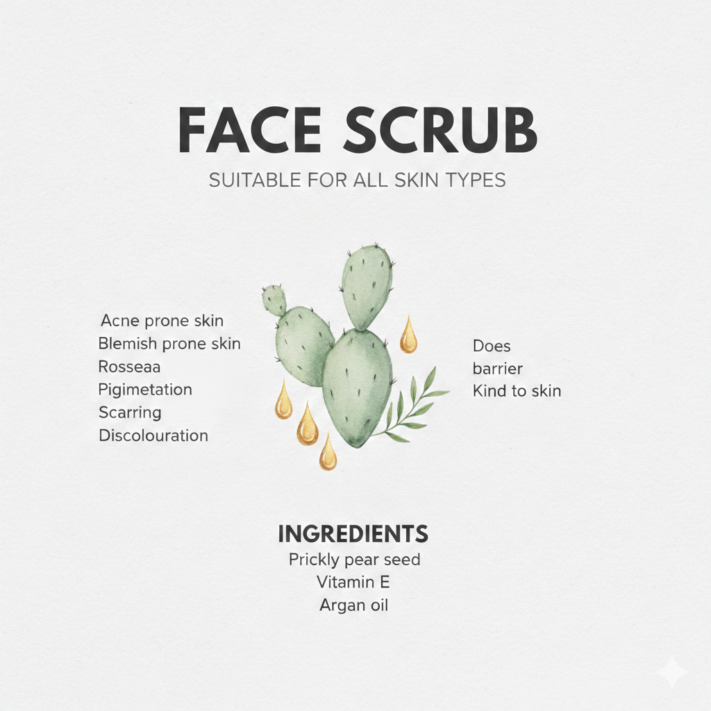 This product combines prickly pear seed oil, argan oil, vitamin E, and glycerin to address various skin concerns. Rich in antioxidants and essential fatty acids, it hydrates and nourishes while being suitable for all skin types. For optimal results, scrub and rinse off as directed.